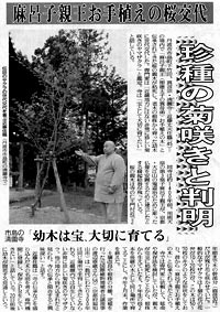 2006年4月 読売新聞と神戸新聞にて「麻呂子親王お手植えの桜の木」と伝承されてきた桜が地元住民の手によって幼木に世代交代したと紹介されました。